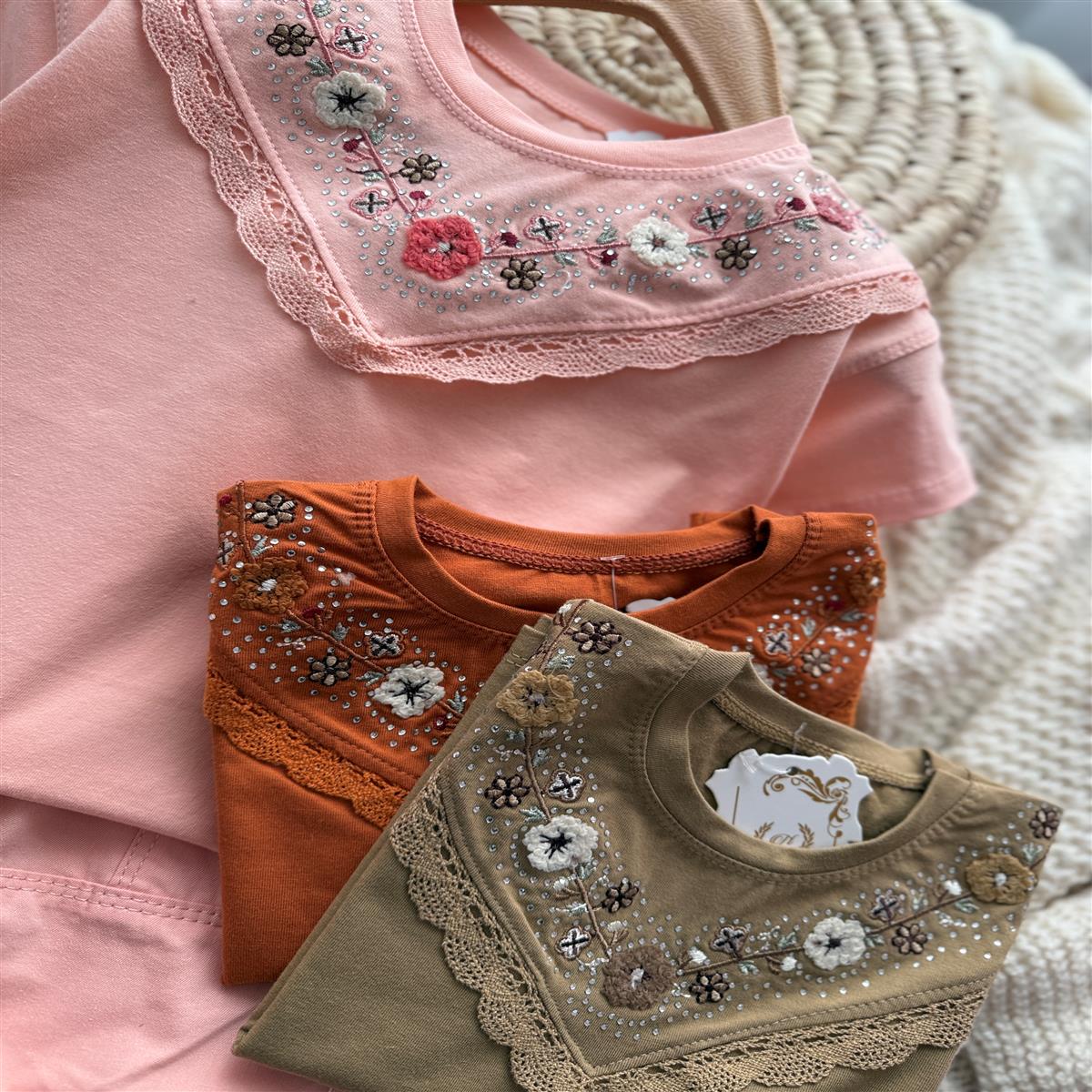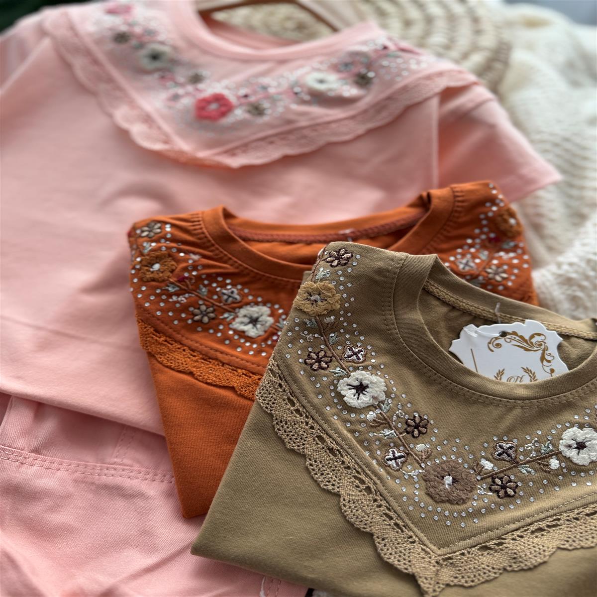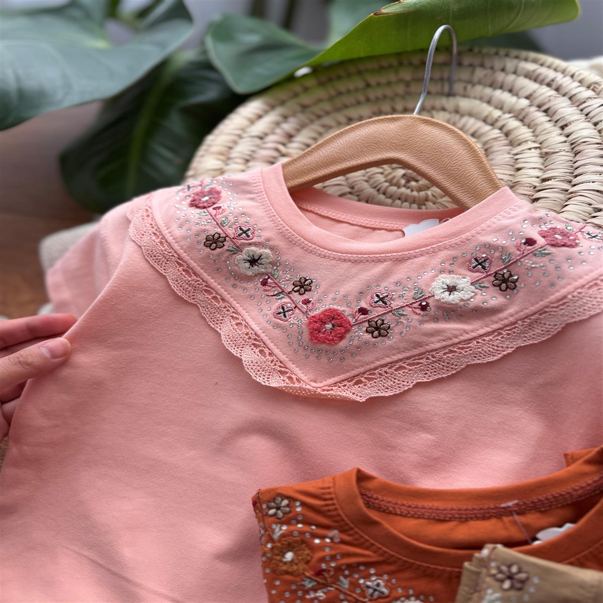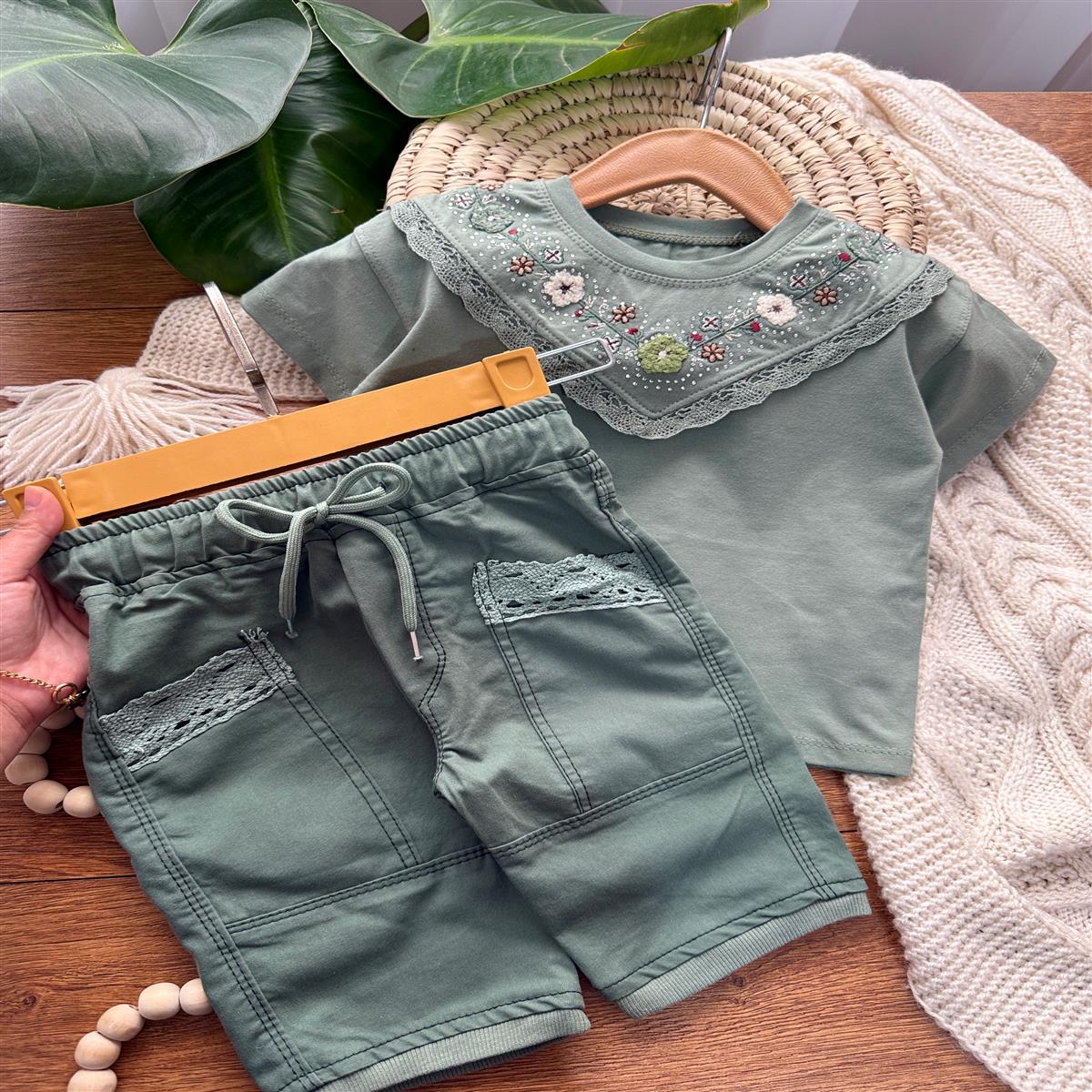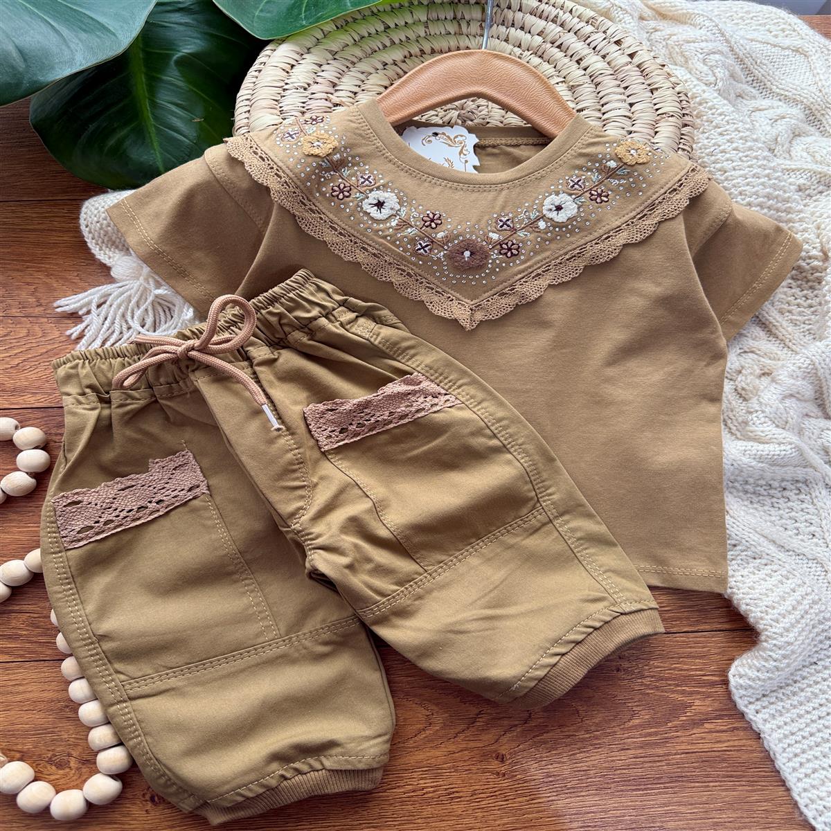 تی شرت شلوارک یقه گلدوزی🌼 45_50 دخترانه کد :6438