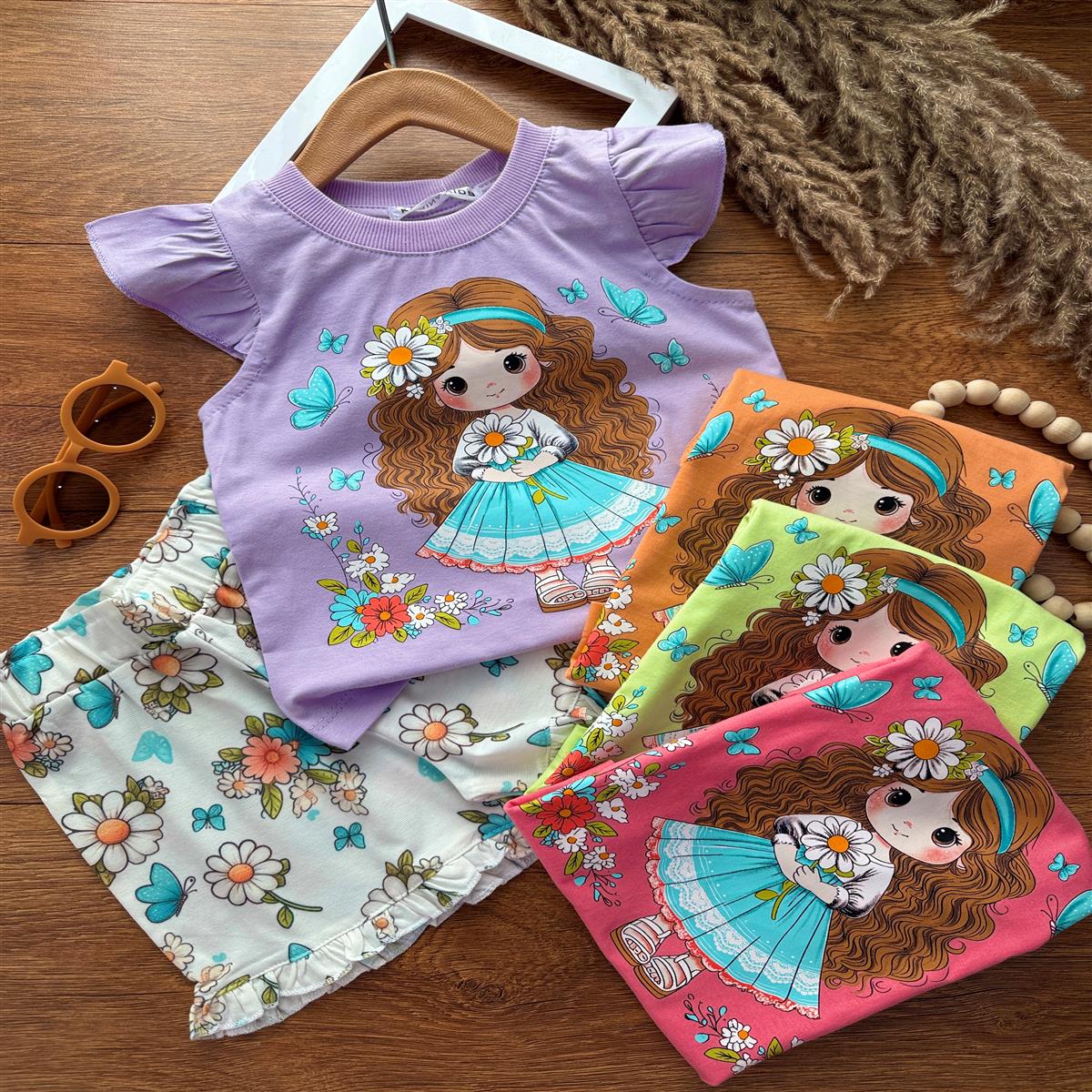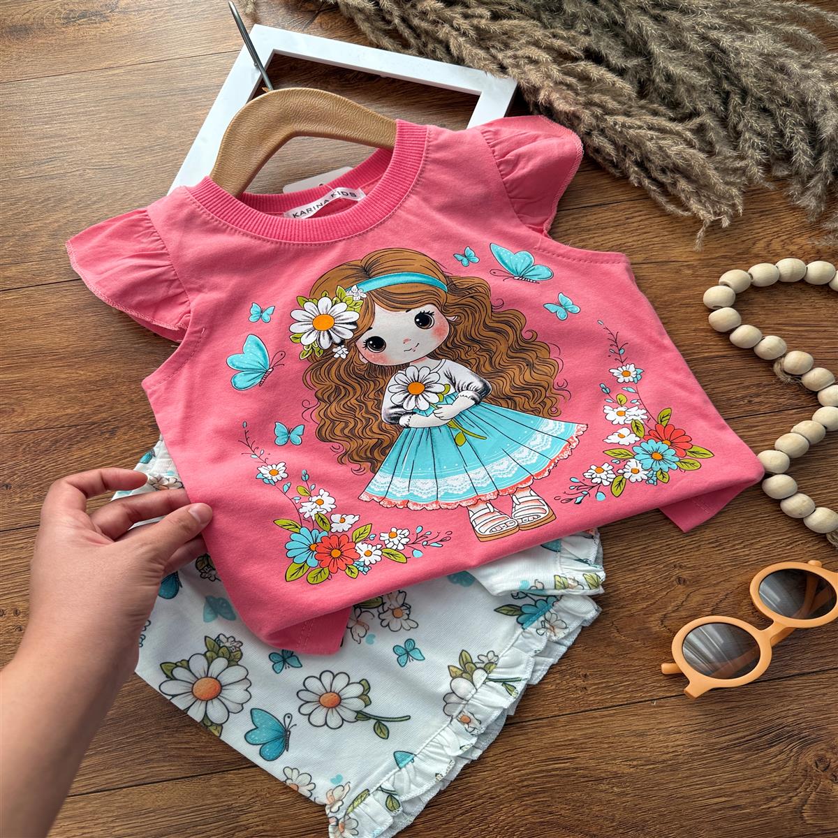 تی شرت شلوارک عروسک دخترانه کد :6728