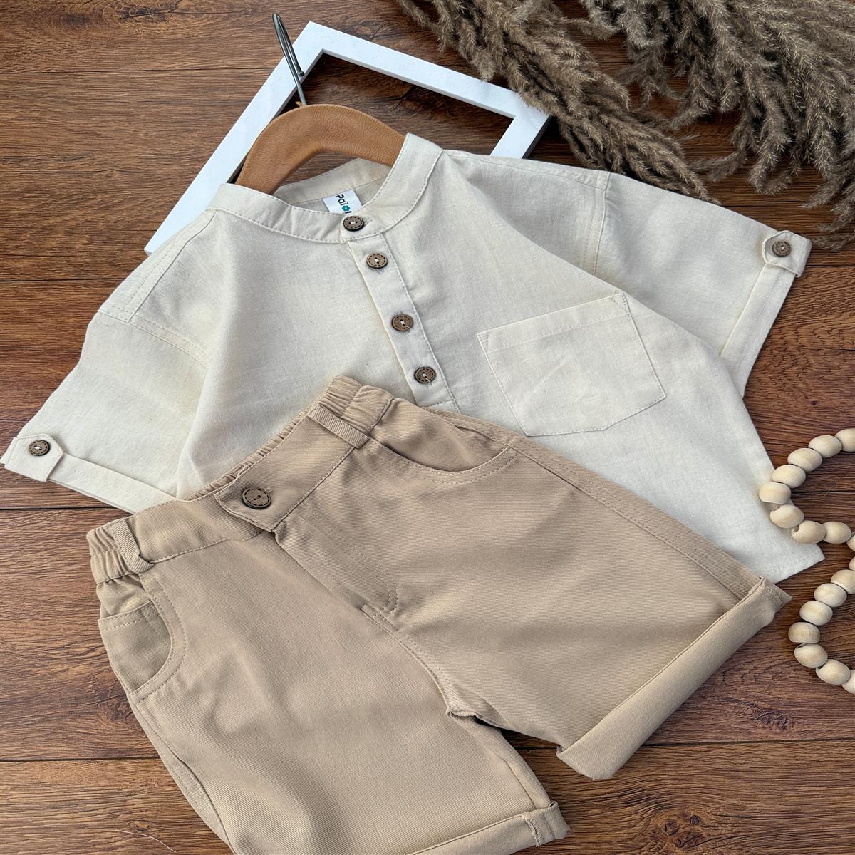 - جنس لباس: تیشرت و شلوارک پسرانه _ کیفیت عالی _ یقه سه سانتی_ بلوز لینن وارداتی _ شلوارک کتان_ کیفیت عالی _ مناسب3 تا 11 سال _ نسبتا قواره دار است